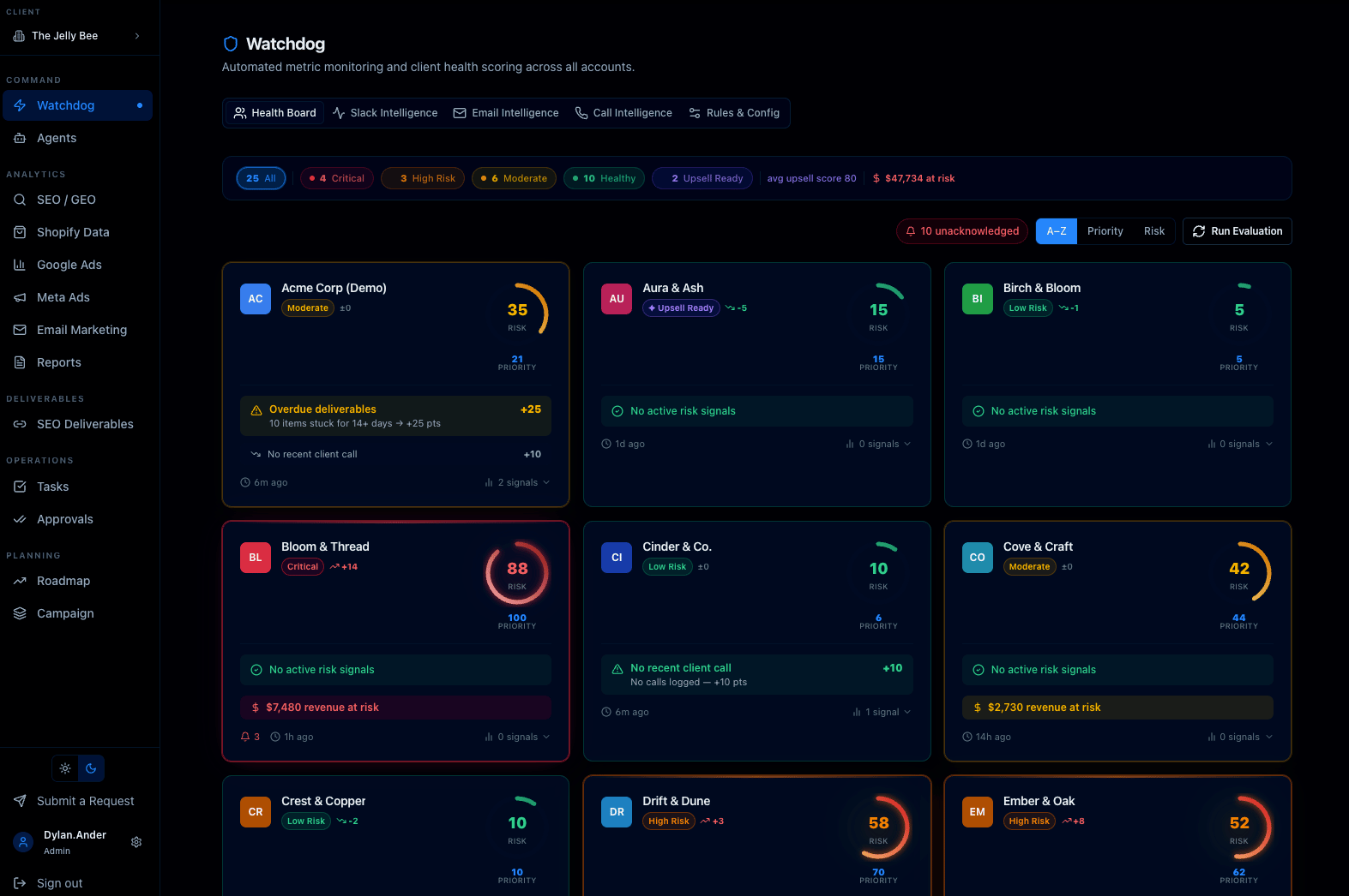 This is a simple system that gives you daily visibility into flags that might move a client's health from good to mediocre, or mediocre to bad. So instead of reacting to a cancellation, you’re now stepping in much earlier.